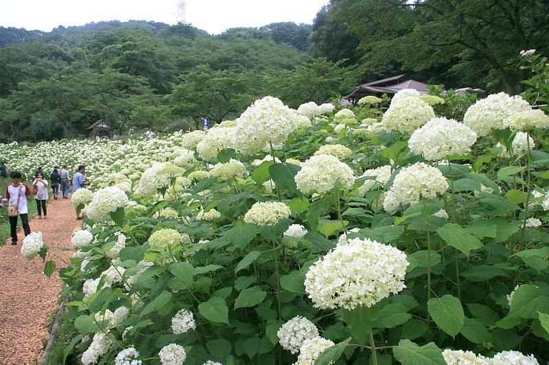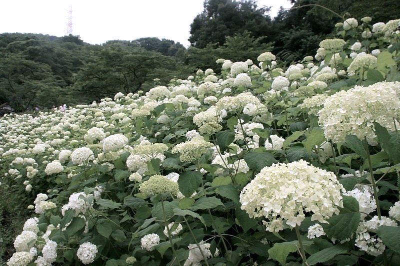 最近、真っ白な紫陽花「アナベル」の群生として名を馳せている、「東京サマーランド」のアジサイ園に行ってきました。